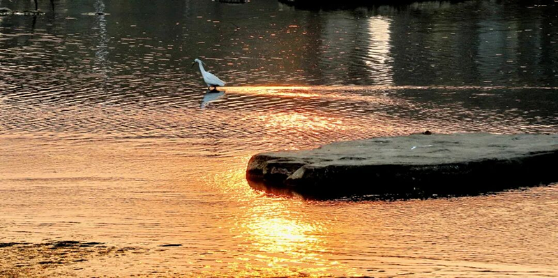 等一场秋天的落日,平原上远处突兀的山脉尽显雄浑,面前大片如海的湖水满是柔情,俨然一幅“落霞与孤鹜齐飞”的绝景。