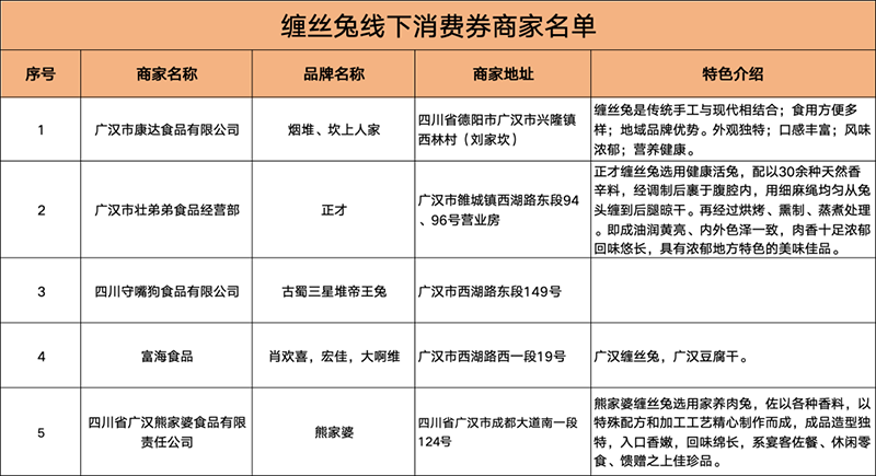 我们已为你整理好完整的商户名单,带上消费券,开启你的广汉美食之旅吧!
