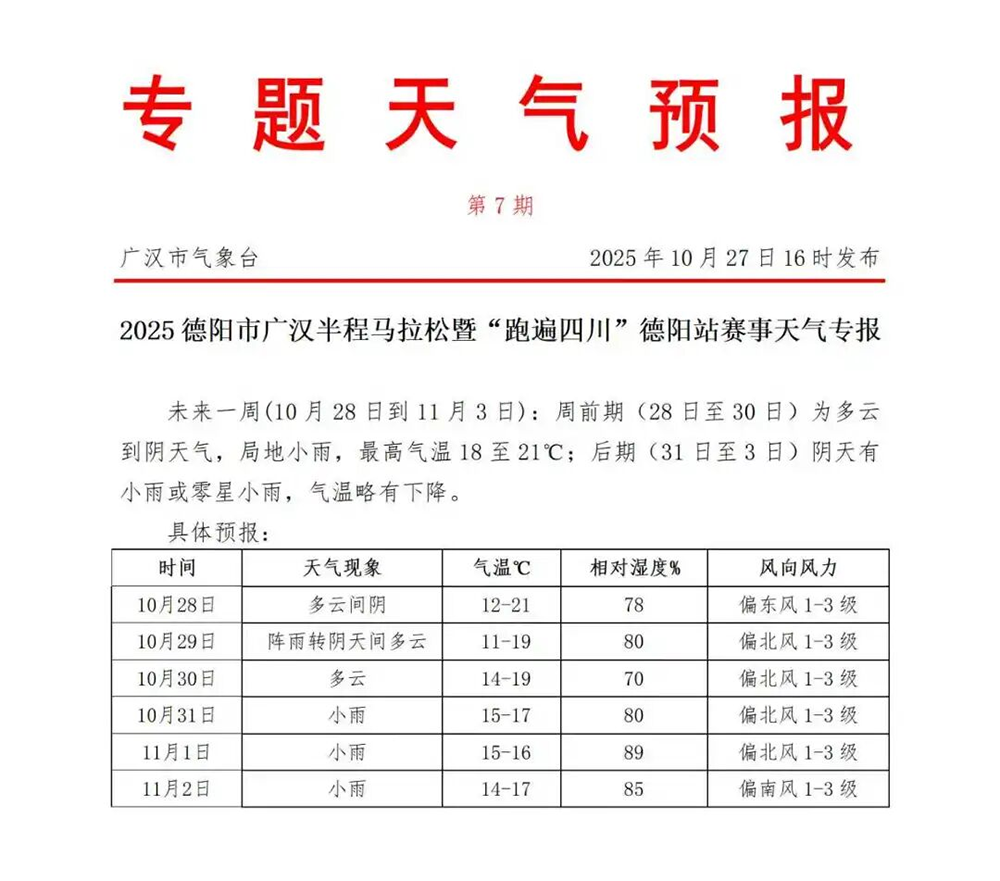 比赛日天气丨2025广汉三星堆半马赛天气预报