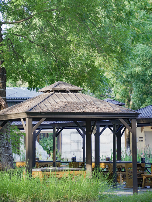 楠溪苑·金乌部落隶属于众欣文旅,距三星堆直线2.5公里,60亩江南园林里藏着三星堆文化元素。湖畔卡座听风、树上餐厅沐光、木屋小院私语,既有市井烟火气,也有园林静谧处。我们主打地道火锅和中餐,还有露天K歌、围炉煮茶、烧烤坝坝、亲子垂钓——是跑者赛后放松的"能量驿站",更是来广汉必打卡的"三星堆美食地标"!