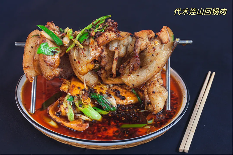代术回锅肉将这道"川菜之王"演绎得淋漓尽致。精选本地土猪二刀肉,先煮后炒,肉片微卷呈灯盏窝状,搭配秘制豆瓣酱和本地蒜苗爆炒。肥而不腻、瘦而不柴的口感,咸中带甜、微辣鲜香的复合味道,让人欲罢不能。
